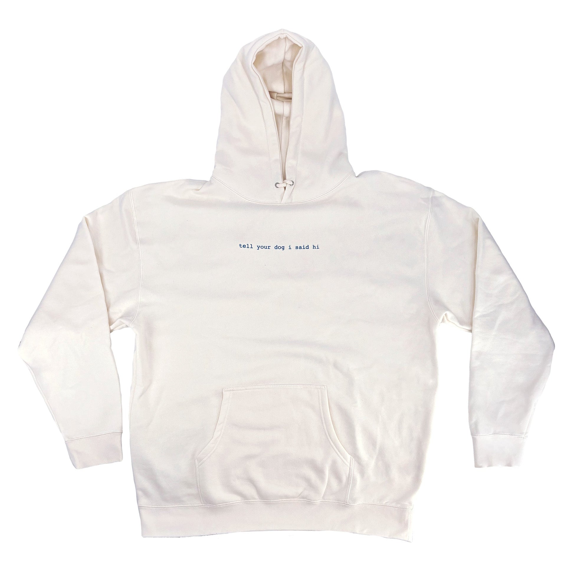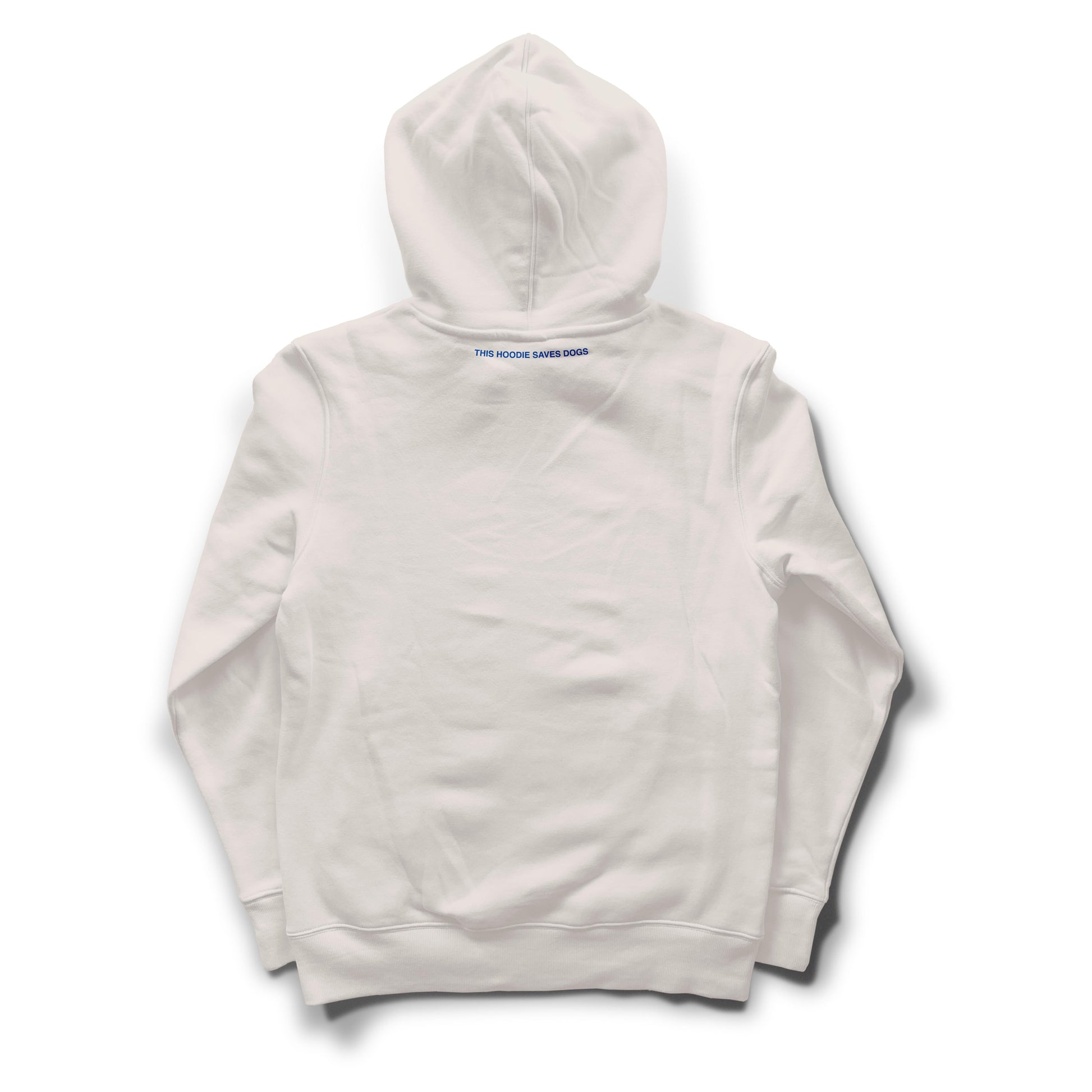 • "THIS HOODIE SAVES DOGS" in small print on the back (under the hood!)