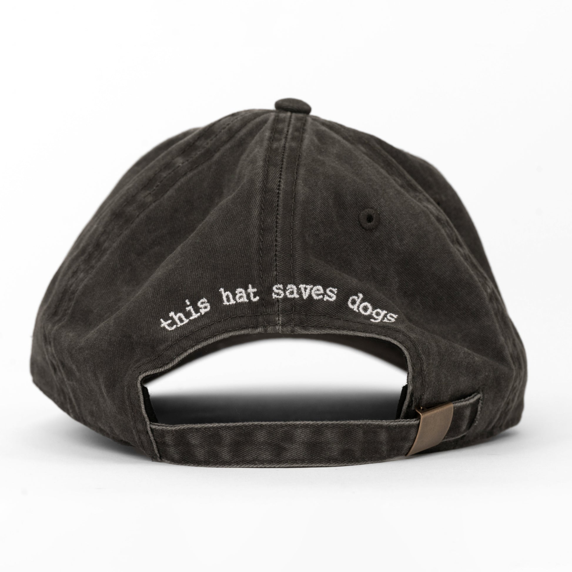 - "this hat saves dogs" embroidered across the back