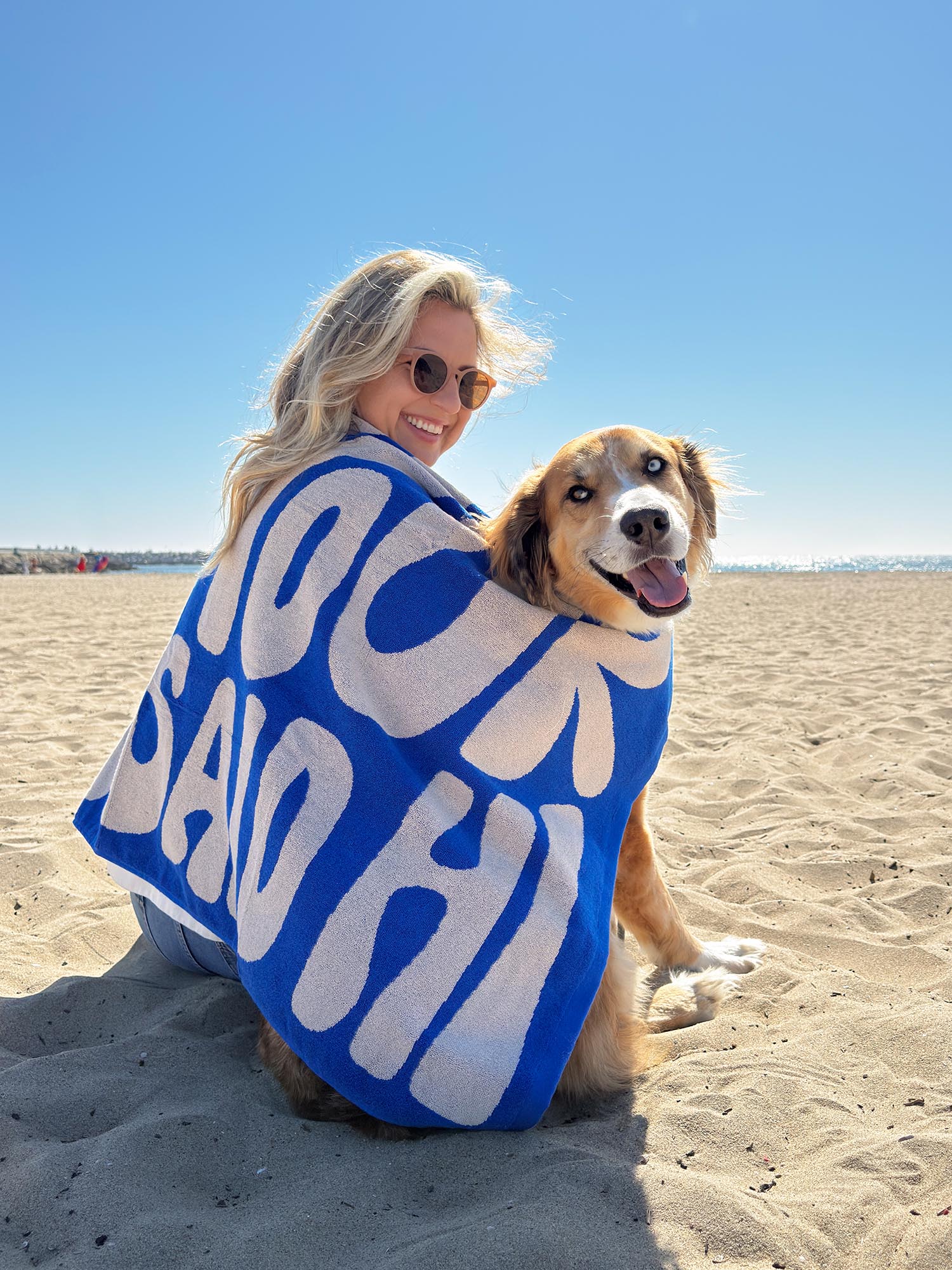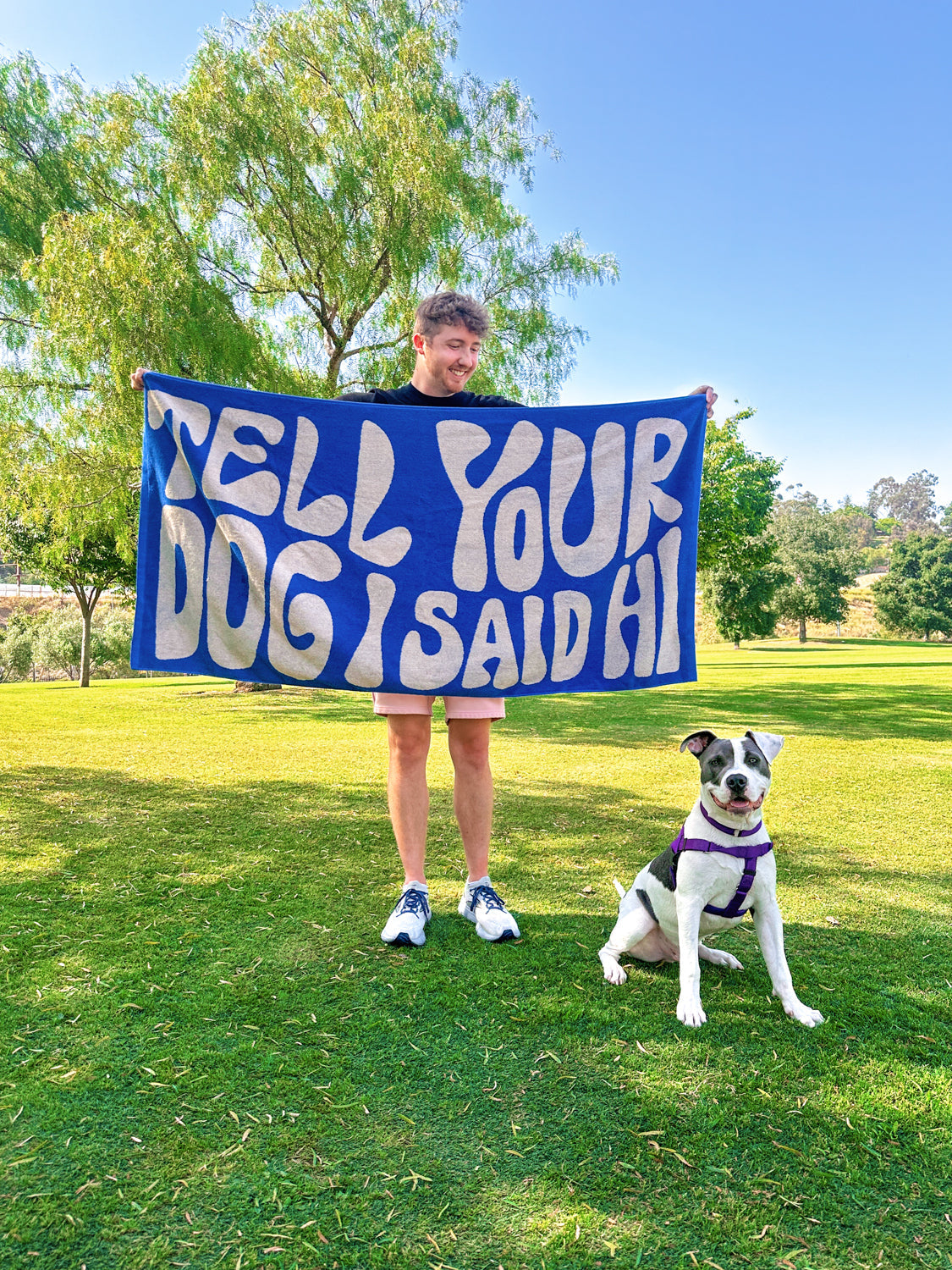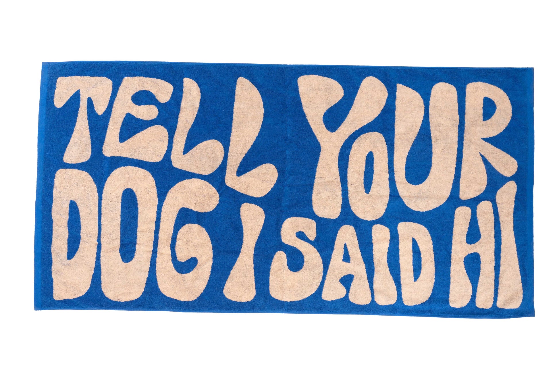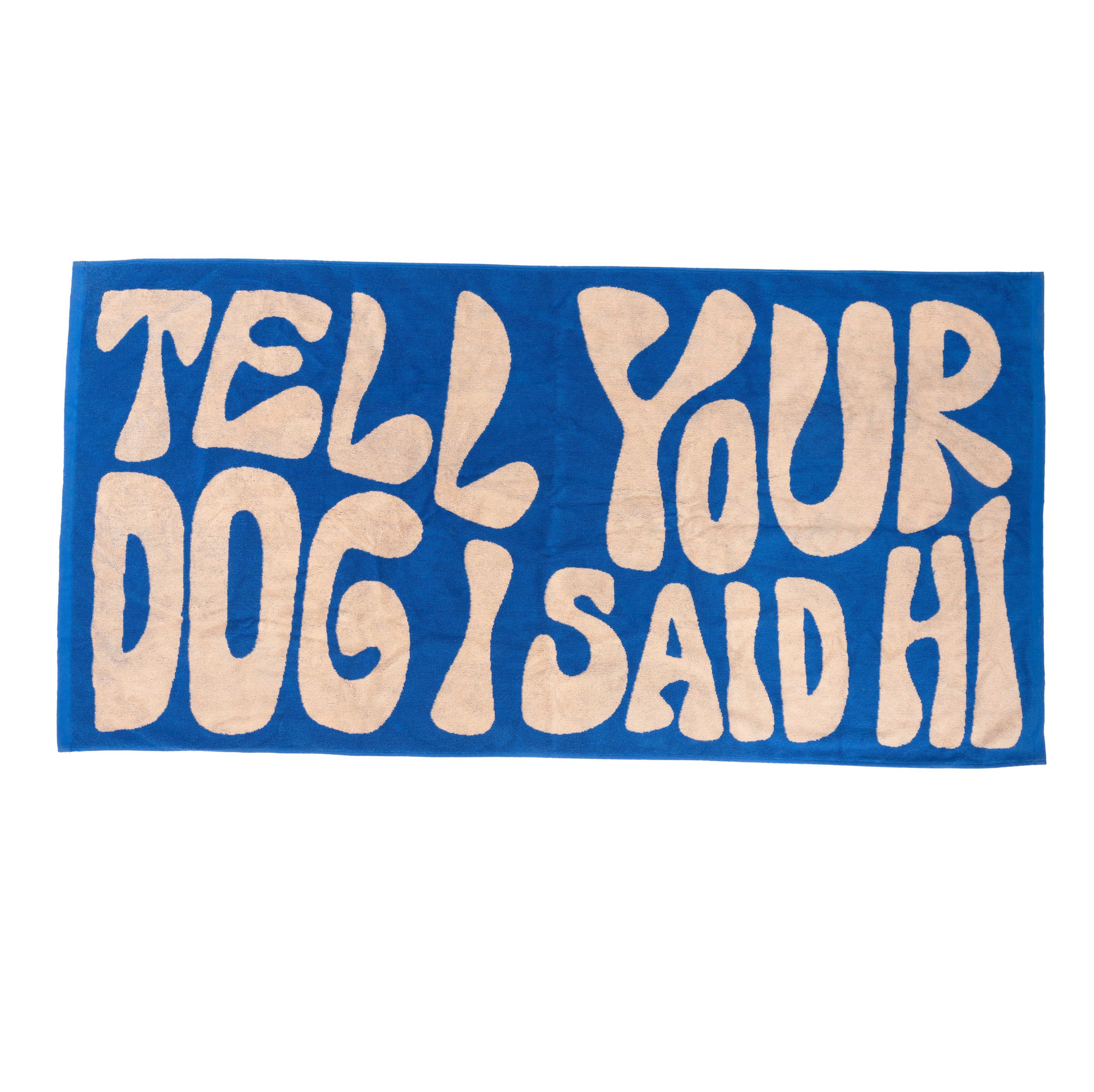 Woven Beach Towel with "TELL YOUR DOG I SAID HI" is perfect for any day out at the beach or pool!