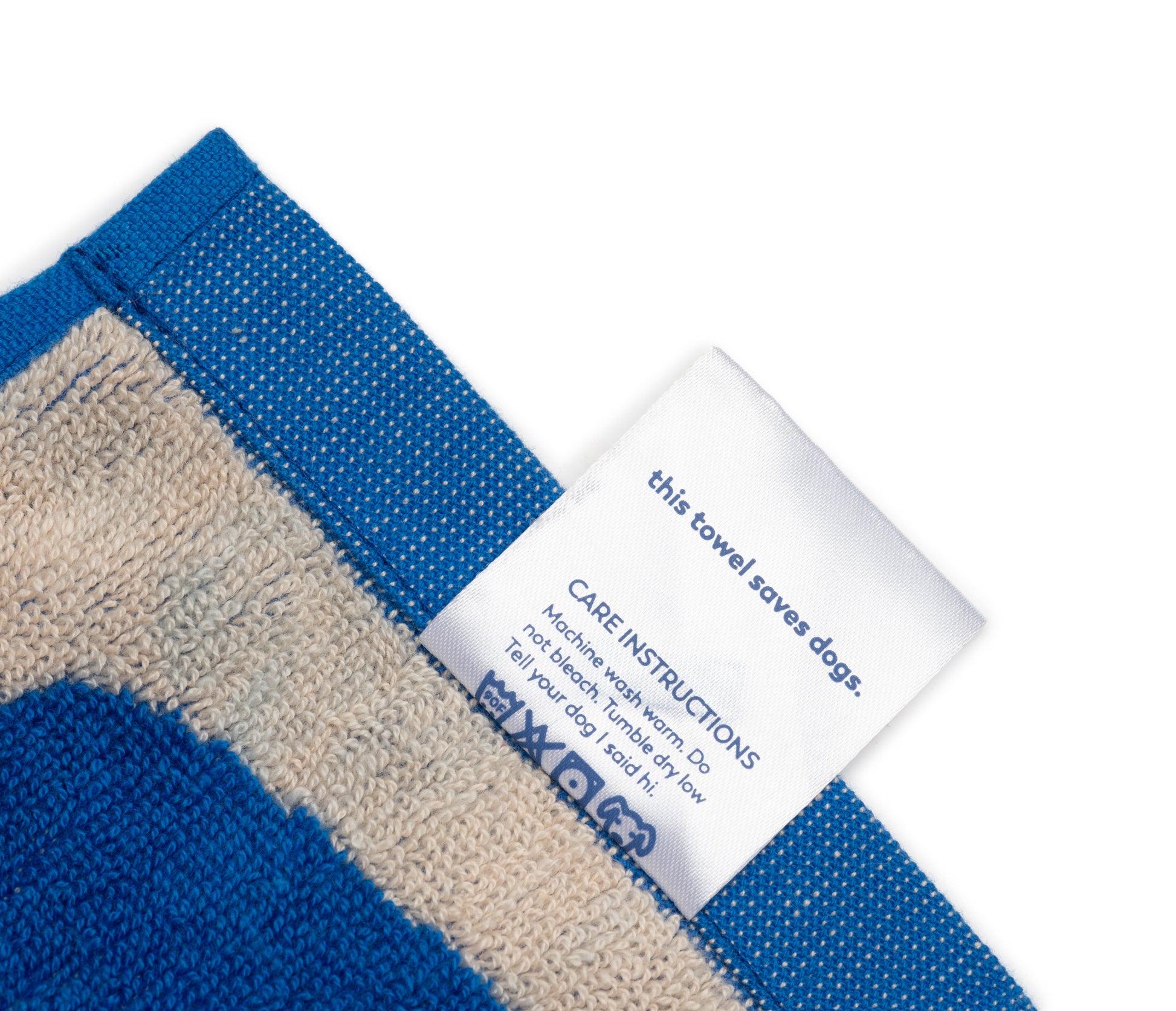 This towel saves dogs. 15% of the net proceeds from all Tell Your Dog I Said Hi™ products go to the 15/10 Foundation, which helps sponsor dogs with behavioral or medical issues that would otherwise have difficulty getting out of shelters.