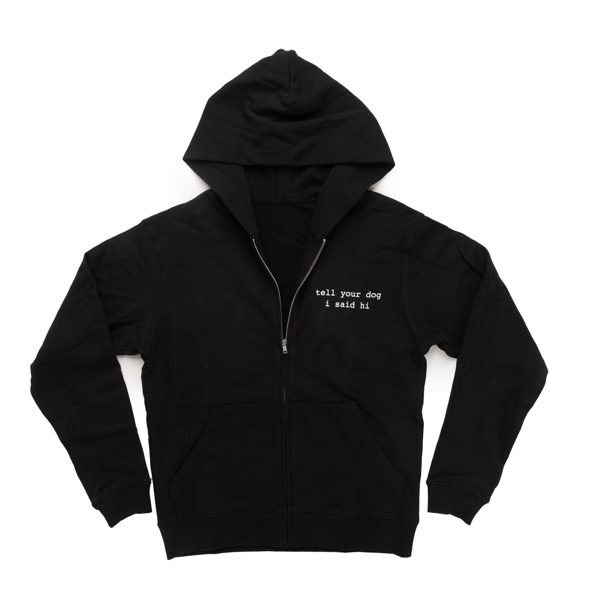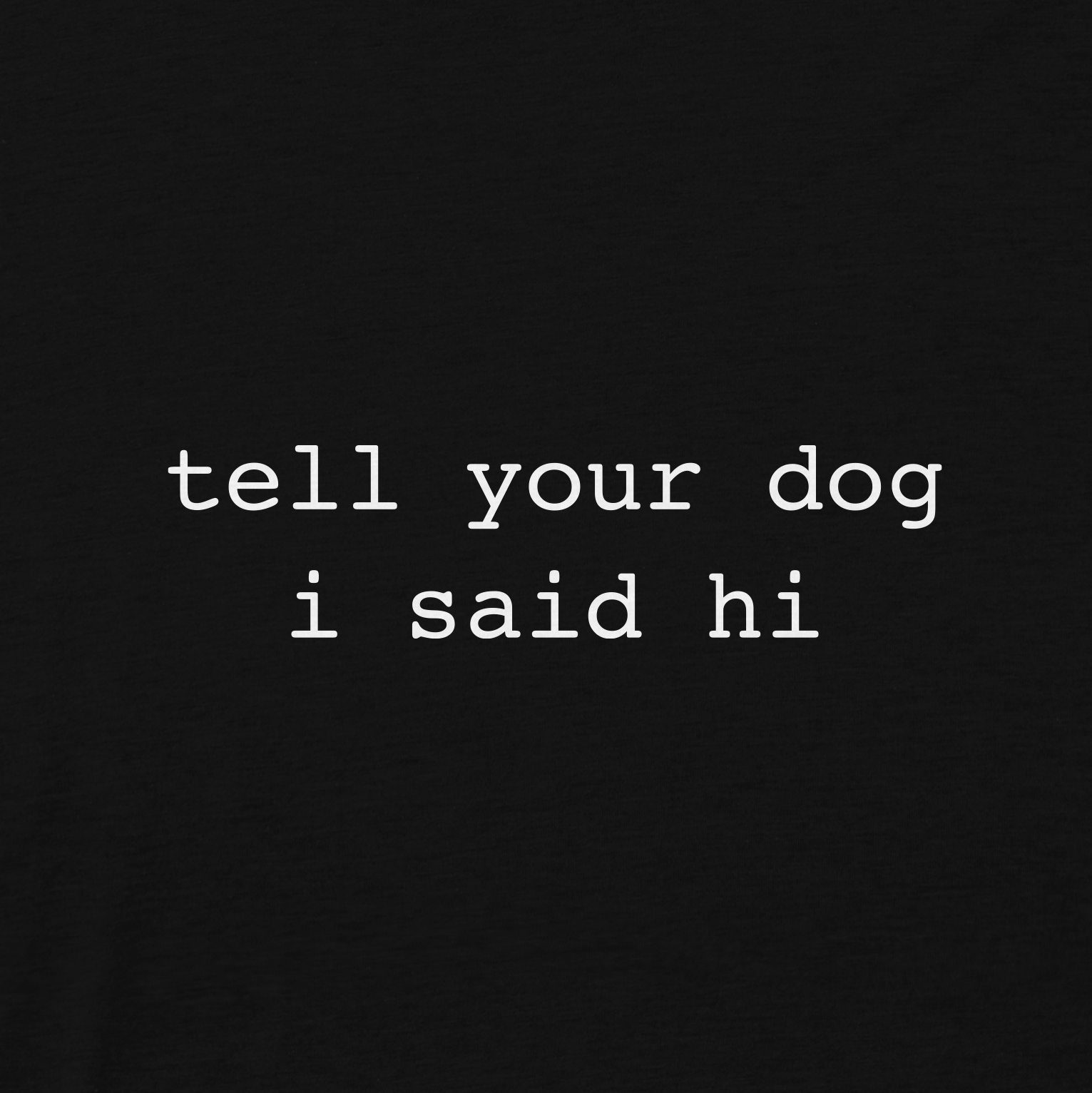 • tell your dog i said hi printed on the front