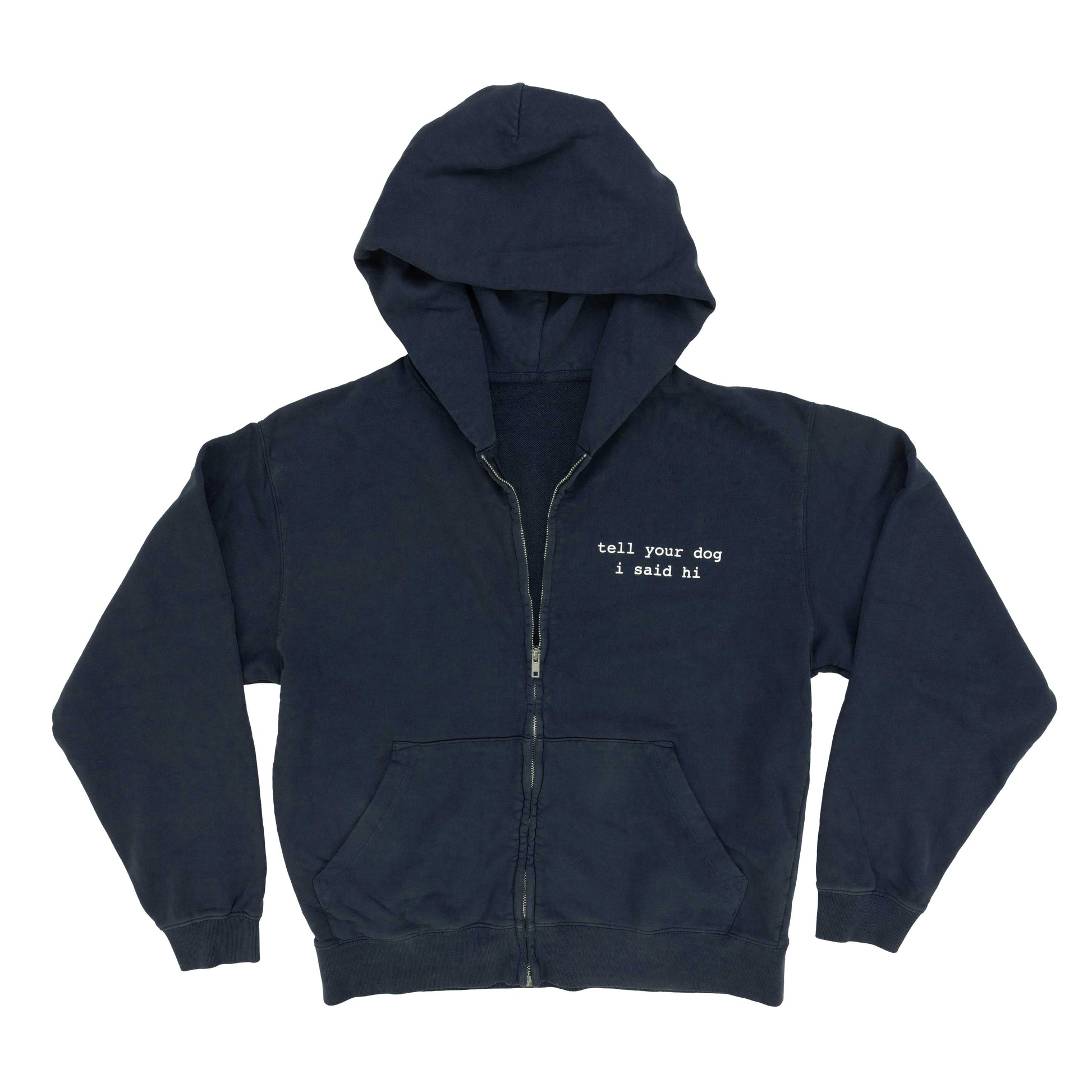 • "THIS HOODIE SAVES DOGS" in small print on the back (under the hood!)